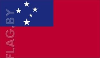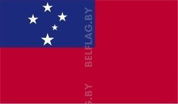 Государственный флаг Независимого государства Самоа представляет собой красное полотнище с соотношением сторон 1:2 с верхней левой четвертью синего цвета, на которой изображены пять белых звёзд созвездия Южный Крест.
