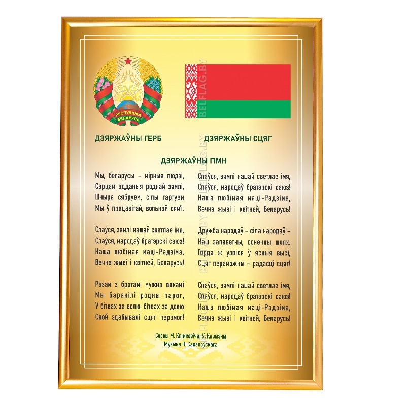 •  Содержимое: флаг, герб и полный текст гимна Беларуси — на одном постере