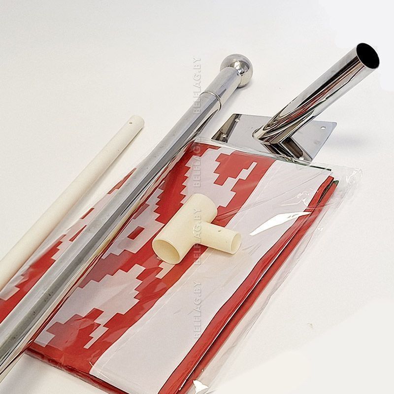 Флагшток нерж. с баннерным плечом, кронштейном и флагом РБ 50*100 см