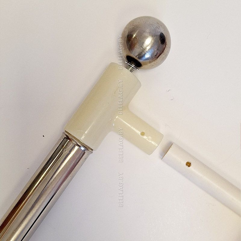 1. Флагшток длиной 150 см – изготовлен из прочной нержавеющей стали, устойчивой к погодным условиям. Оснащен навершием в форме шара, придающим завершённый вид.