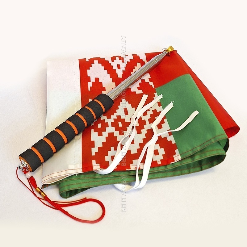 Флагшток телескопический из нержавейки, с мягкой ручкой и флагом Беларуси 50×100 см