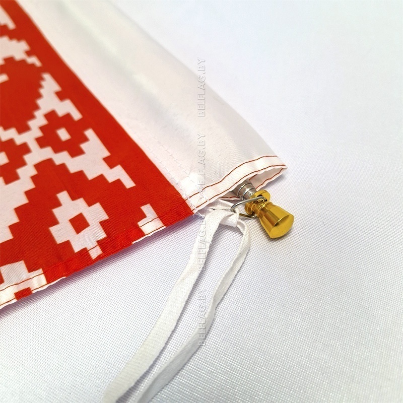 Флаг из полиэстера 100D оснащён карманом, который надевается на древко, и дополнительными завязками сверху и снизу. Такая система предотвращает сползание и перекручивание флага, обеспечивая его устойчивость даже при сильном ветре.