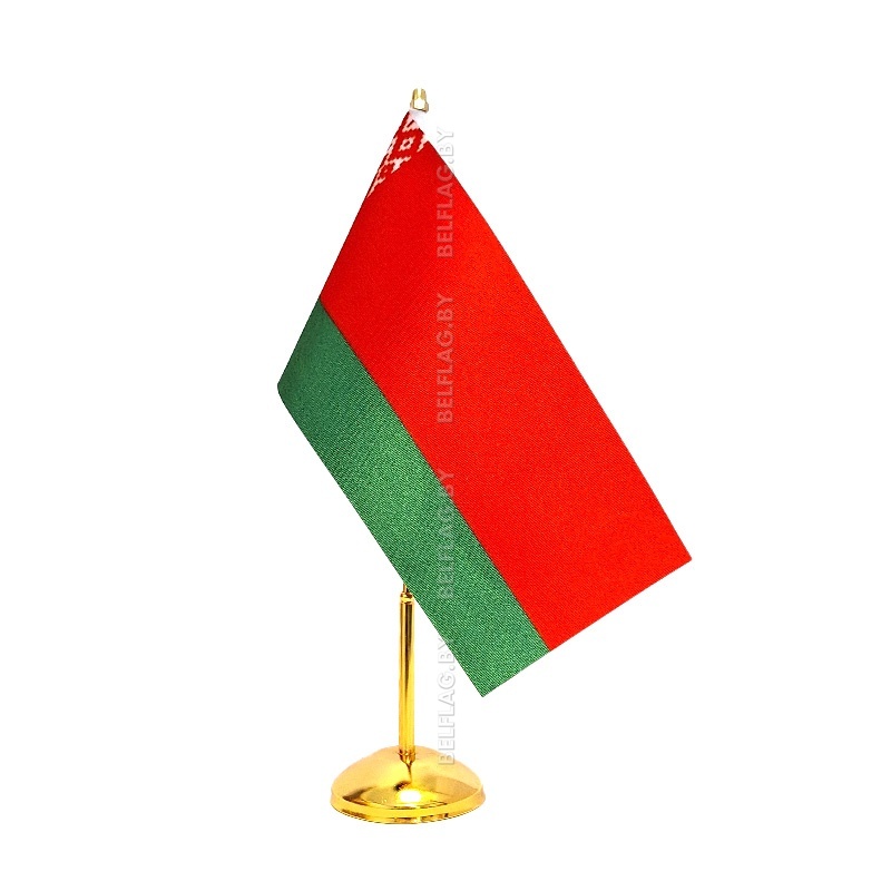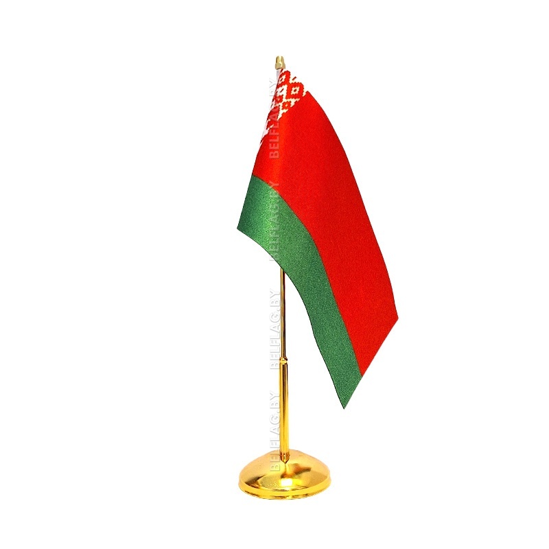 Атласный настольный флажок Республики Беларусь 12x24 см — стильный аксессуар для офиса, рабочего стола или официальных мероприятий. Флажок выполнен из атласного полотна с термообработанными краями, оснащен карманом для древка и установлен на прочную металлическую подставку, доступную в золотом или серебряном цвете. Цена указана с НДС, минимальный заказ — один флаг.