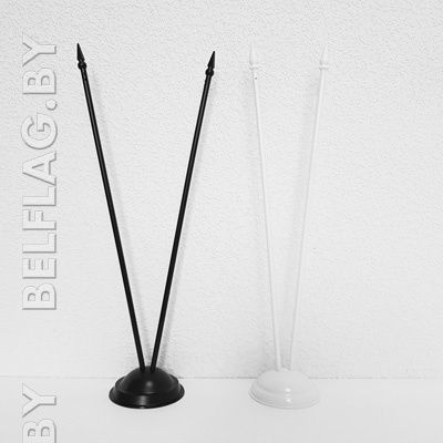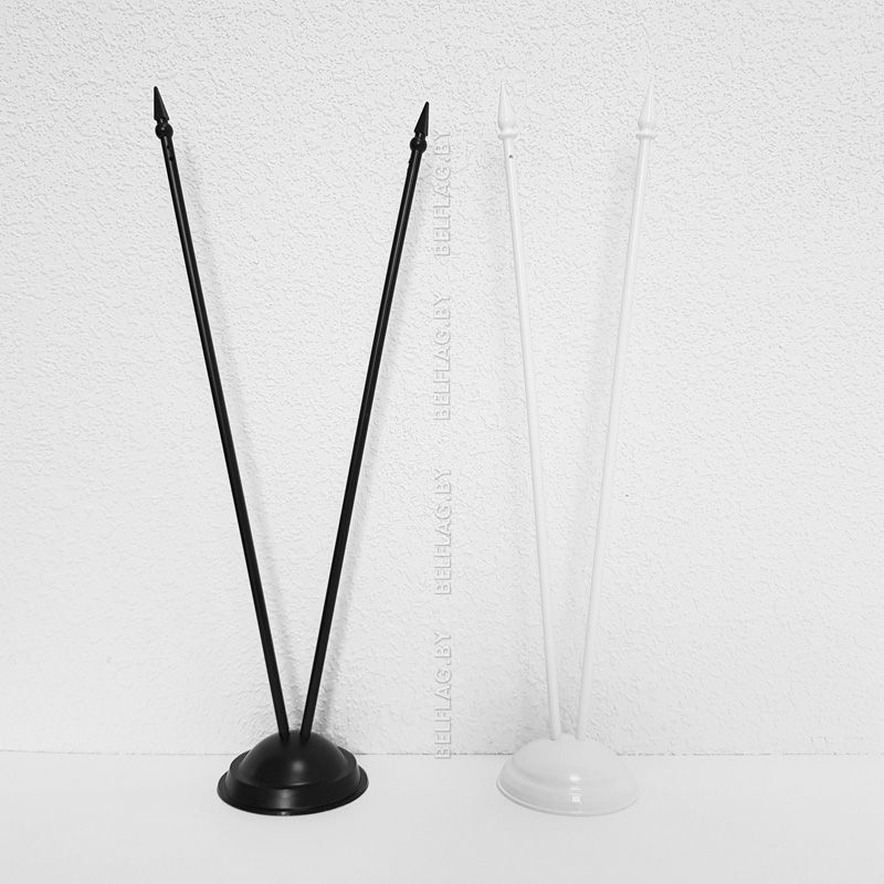 Конструкция  пластиковой подставки для флажков состоит из основания и двух флагштоков с заостренными навершиями.