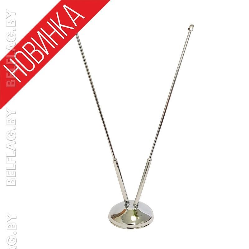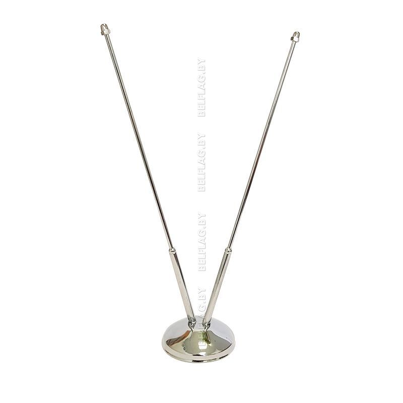 Флагшток настольный 32 см, металл, V-образный, серебро, арт. DR32S2 – это стильное и практичное решение для размещения двух флагов. Компактный, но при этом устойчивый дизайн делает его идеальным выбором для официальных мероприятий, конференций, приемных, государственных учреждений и деловых офисов.