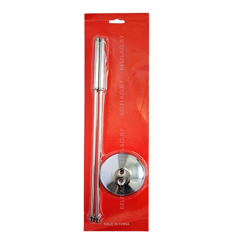 Флагшток полностью изготовлен из металла, что гарантирует его устойчивость и долговечность. Основание диаметром 77 мм и высотой 23 мм выполнено из металла толщиной 1 мм и снабжено двумя отверстиями с резьбой для надежной фиксации древков.