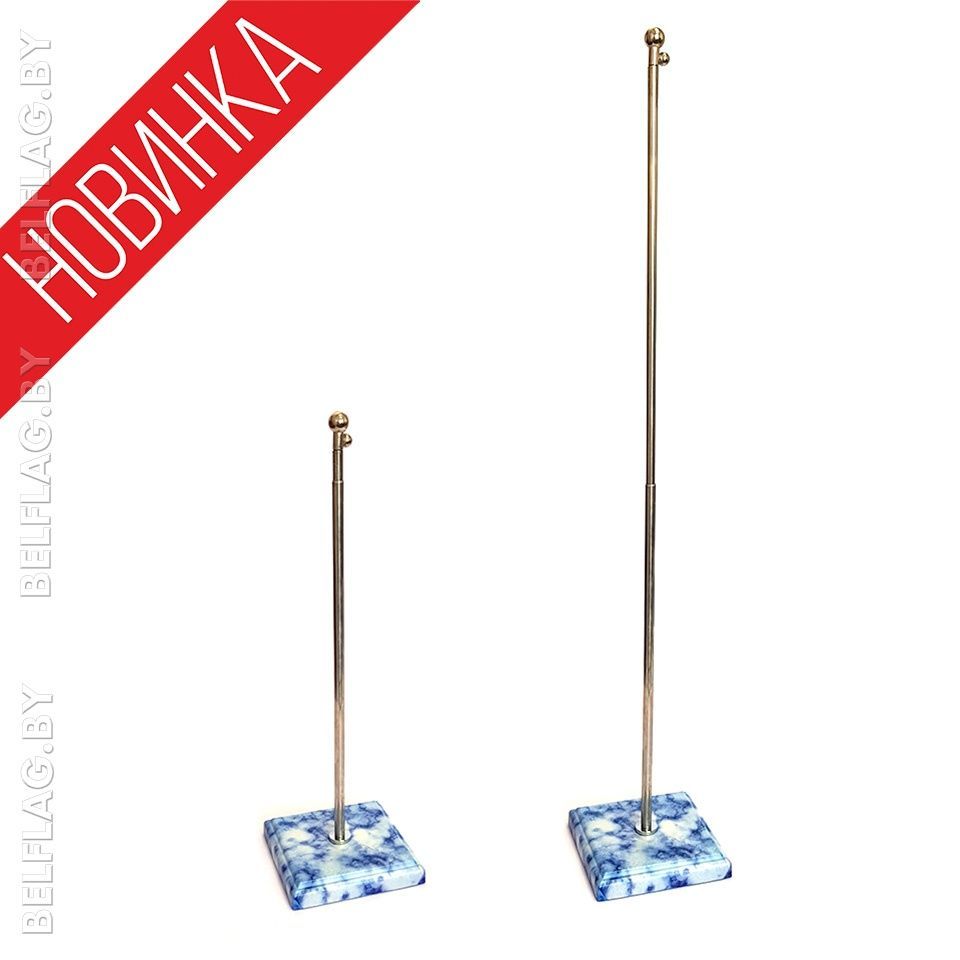 Флагшток настольный, телескоп., с подставкой из бело-голубого мрамора