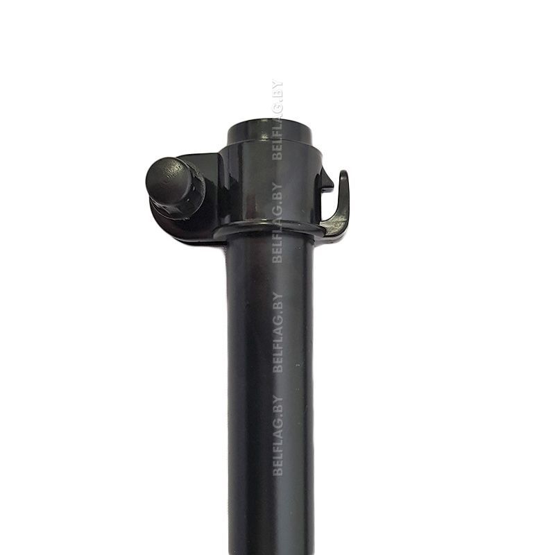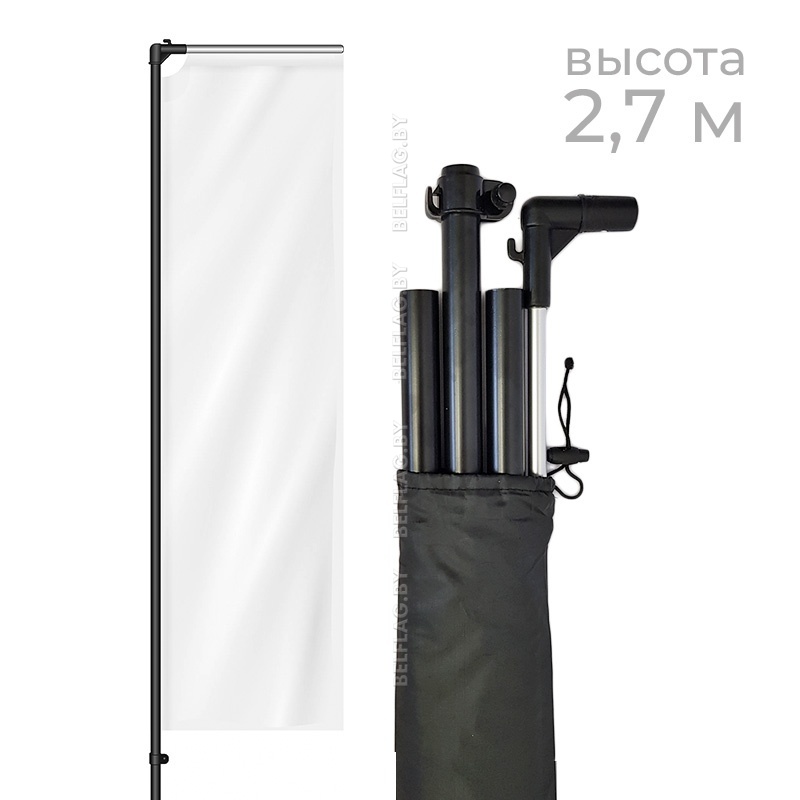 Флагшток состоит из четырех частей (три части стойки и перекладина). Толщина стенок стойки 1 мм. Упакован в тканевый чехол черного цвета.