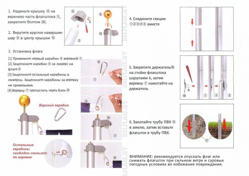 Не рекомендуется использовать флаги площадью более 2,25 м² материала.