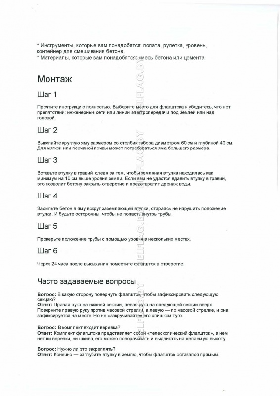 Комплект может использоваться в двумя флагами, например с флагом страны и флагом города, которые крепятся на разной высоте. Благодаря поворотным, крепежным кольцам, флаги не будут запутываться на флагштоке. Рекомендуется демонтировать флагшток при сильном ветре и суровых погодных условиях.   Простая установка за считанные минуты с системой поворотной блокировки, имеет вращающийся замок между каждой секцией (без веревок или шкивов), позволяет выдвигать и регулировать стойку за считанные минуты.