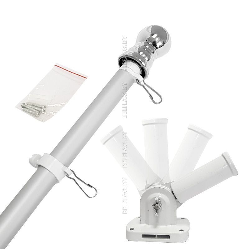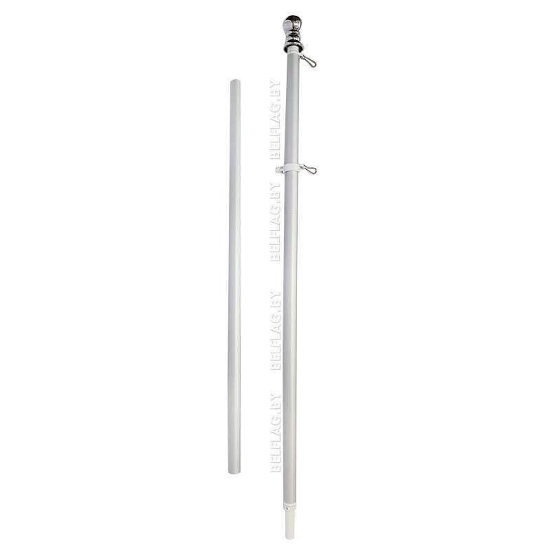 Флаг крепится на раздвижные кольца с карабинами, что позволяет регулировать расстояние между точками фиксации, делая флагшток универсальным для разных размеров флагов. Подходит для флагов с люверсами, размеры: 60×120 см, 75×150 см, 50×100 см.
