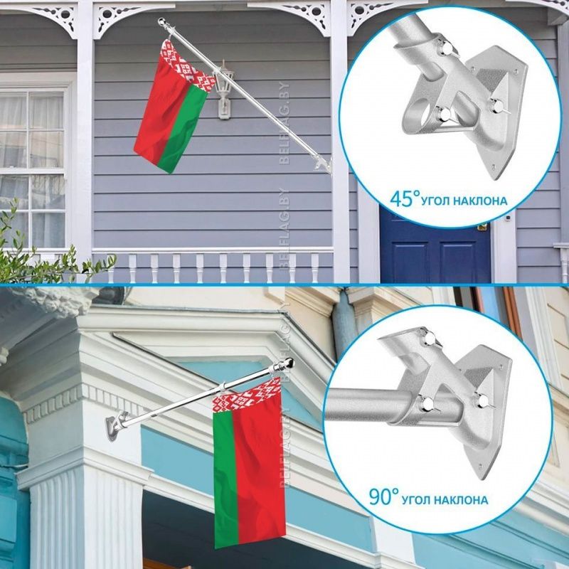 ✅ Двухпозиционный настенный кронштейн – регулировка угла установки флагштока 45° или 90°.