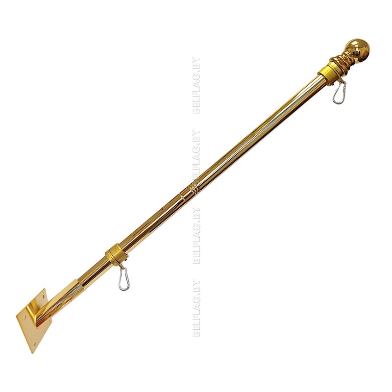 ✔ Кронштейн из нержавеющей стали с покрытием глянцевое золото – фиксирует флагшток под углом 45°.