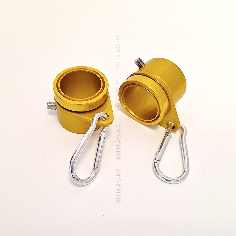 Флагшток оснащен кольцами против скручивания флага, выполненными из анодированного алюминия в цвет золота. Кольца оснащены крепежными карабинами на поворотном элементе что предотвращает наматывание флага на древко, обеспечивая его свободное вращение даже при сильном ветре.