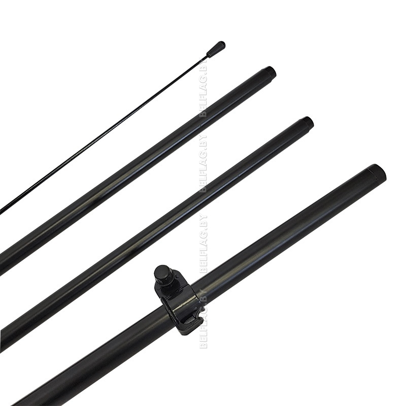 Флагшток виндер состоит из трех алюминиевых элементов (трубок) и одного гибкого элемента - стеклопластиковой верхушки. Толщина стенок трубок 1 мм. Длина в разобранном виде 111,6 см. Упаковка - тканевый чехол.