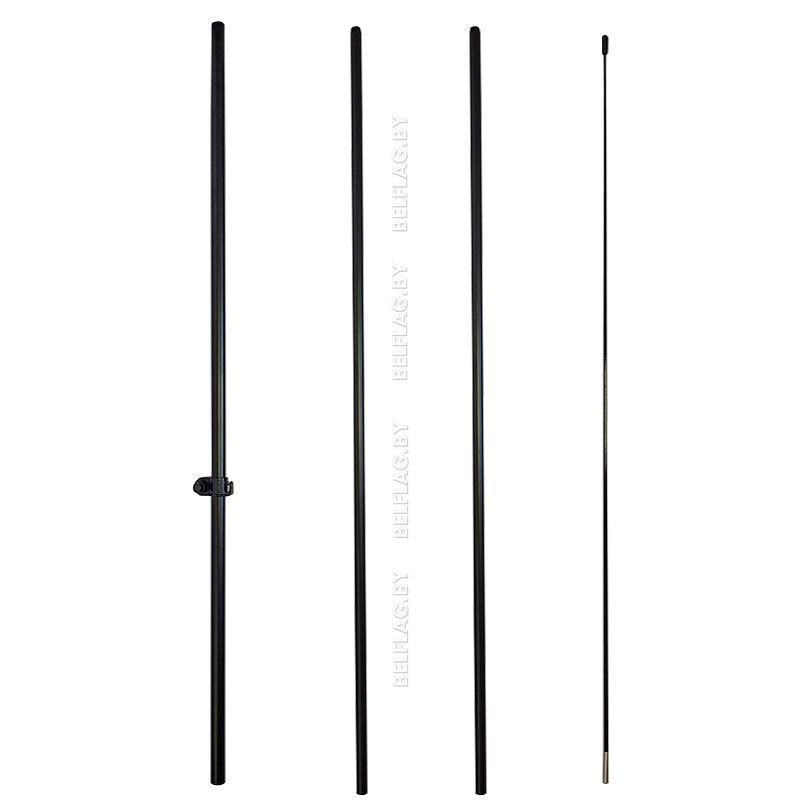 Флагшток виндер состоит из трех алюминиевых элементов (трубок) и одного гибкого элемента - стеклопластиковой верхушки. Толщина стенок трубок 1 мм. Длина в разобранном виде 111,6 см. Упаковка - тканевый чехол.