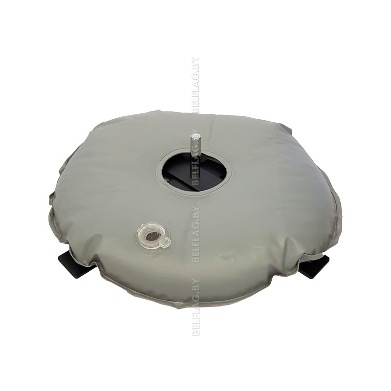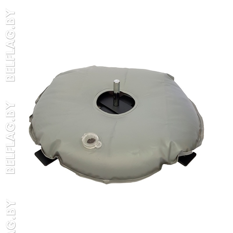 Основание представляет собой две изогнутые пластины из железа шириной 50 мм, которые в разложенном виде образуют крестовину. В центре закреплена посадочная ось с подшипником и пластиковой шайбой. Посадочный размер: высота 75 мм, диаметр 17 мм. В комплект входит мешок для воды объёмом 15 литров, который надевается на крестовину и служит утяжелителем.