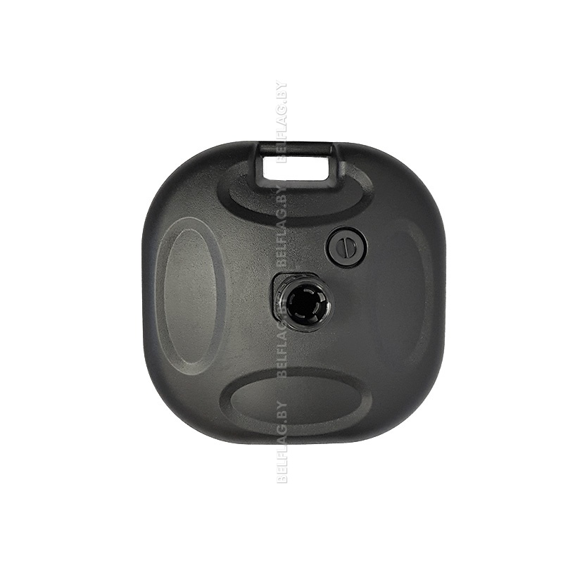 В комплект входит пластиковое наливное основание белого цвета размером 45×45×14 см с заливной горловиной и пробкой. При заполнении водой основание обеспечивает вес до 17 кг и служит утяжелителем для стандартного флагштока виндер. Посадочный узел рассчитан на установку мачты виндера соответствующего диаметра.