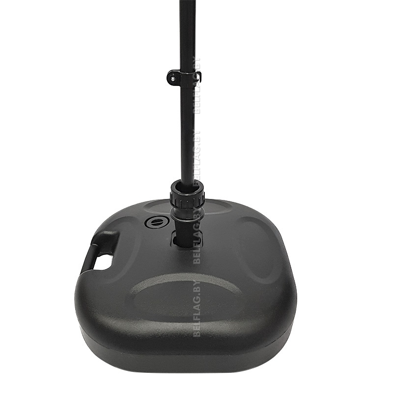 Наливное пластиковое основание размером 45×45×14 см — лёгкая в хранении и перевозке база для флагштока виндер, которая наполняется водой на месте эксплуатации. В пустом виде основание почти ничего не весит, а после заполнения превращается в устойчивый утяжелитель для уличных флагов у магазинов, автосалонов и торговых центров.