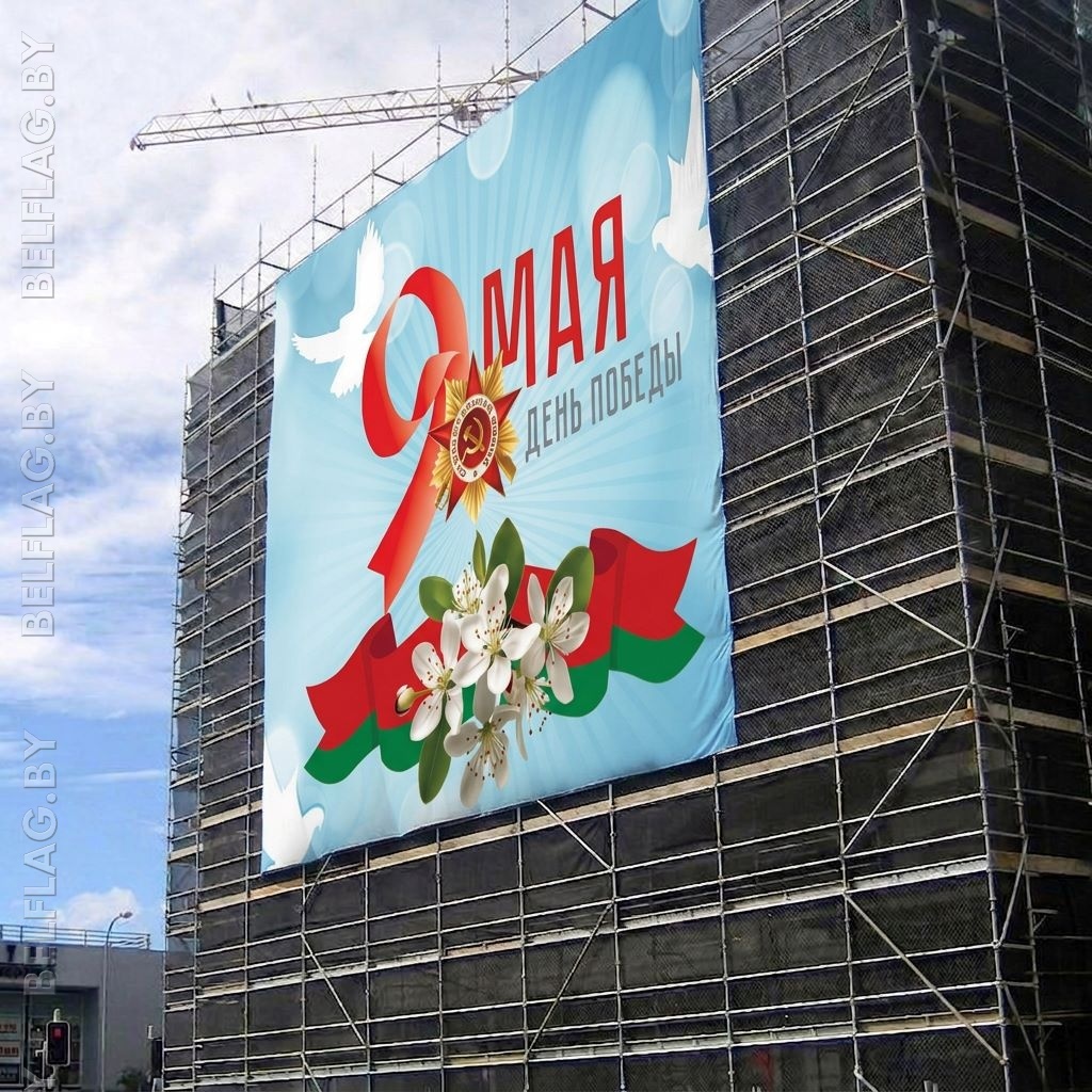 Баннер на флажной сетке фасадный 9 мая
