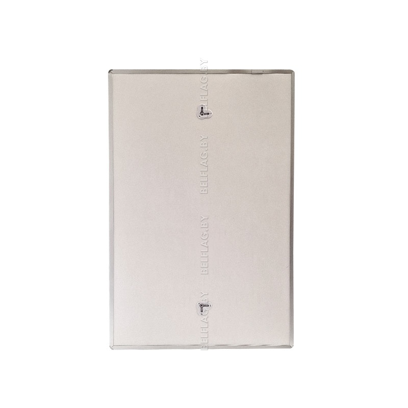 Алюминиевая рамка с прозрачным пластиковым экраном на магнитах — удобное и стильное решение для размещения информации. Цвет корпуса — серебро, экран имеет рамку серо-серебристого оттенка. Толщина конструкции — 14 мм, углы аккуратно скруглены, что придаёт рамке современный внешний вид.